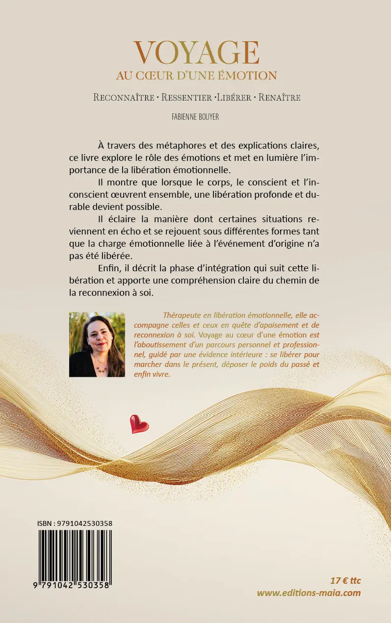 Thérapeute en libération émotionnelle, elle accompagne celles et ceux en quête d’apaisement et de reconnexion à soi. Voyage au cœur d’une émotion est l’aboutissement d’un parcours personnel et professionnel, guidé par une évidence intérieure : se libérer pour marcher dans le présent, déposer le poids du passé et enfin vivre.